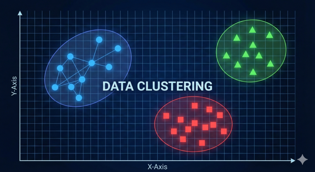 In Clustering we are not looking for a data output, but we are looking for association (similarities) between data points. It aims to organize data by identifying shared characteristics. Unlike other methods where you give the machine the answer key, clustering allows the system to find the “hidden” structure on its own.